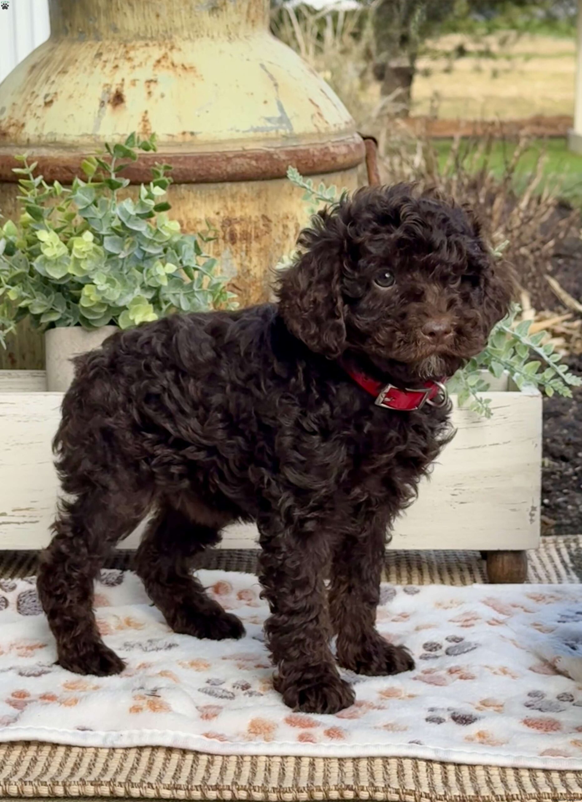 Meet Oakley, one of our Miniature Poodles. This Chocolate colored puppy is a real gem. She has a soft, plush coat and an irresistibly sweet face that’s sure to steal your heart. She is affectionate, playful, and ready to fill your home with love and joy.