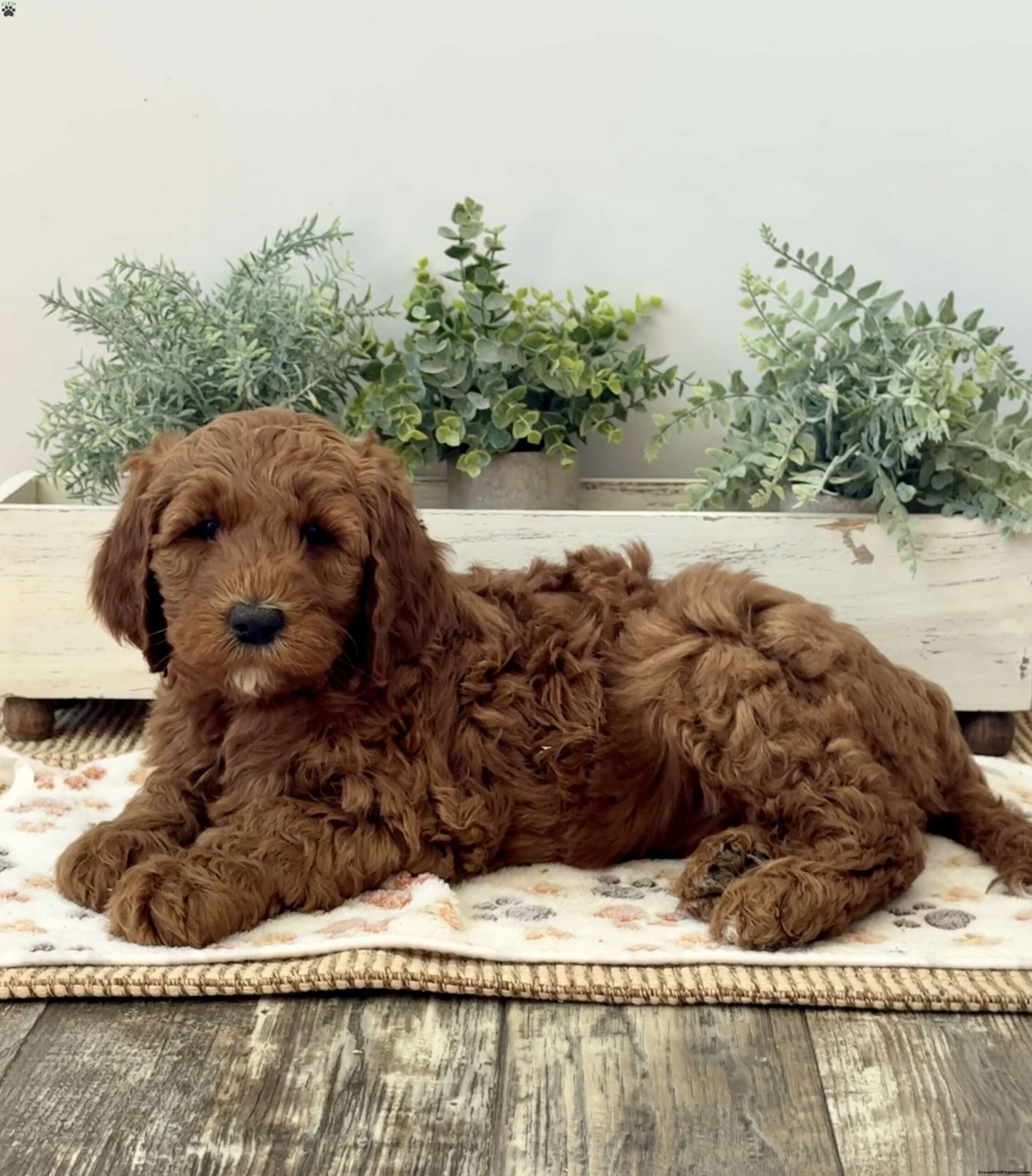 • Mother: 50 lb F1B Goldendoodle — gentle, loving, and intelligent